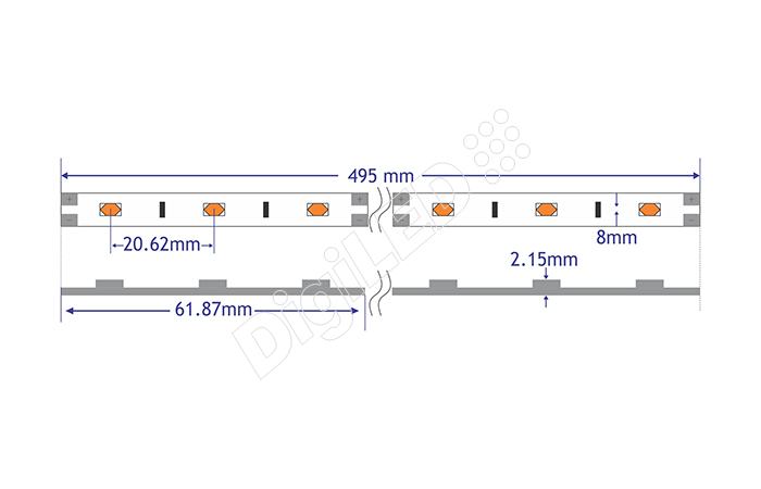 | 24 LED / module | CW/ NW/ WW | 8 mm W x 495 mm L x 1.6 mm H | DC 12 VOLT | 0.48 A | 1200 | -200~ +600 | 61.87 mm | FR4 | 5.76 Watt / Module |
